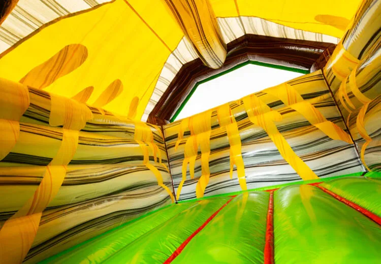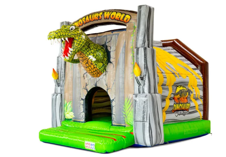Een spectaculair springkussen dat elke jonge dino-fan laat brullen van plezier.